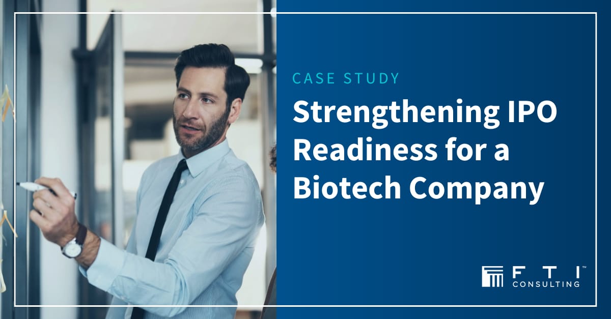 Learn more about the impact: https://www.fticonsulting.com/insights/case-studies/strengthening-ipo-readiness-biotech-company
