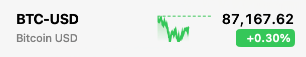 👉 Reuters notes that “Bitcoin tumbled as much as 36% from a record $126,223 on October 6, and remains around 30% below its high.” As of 8:40 am this morning, Bitcoin is trading at $87,167.